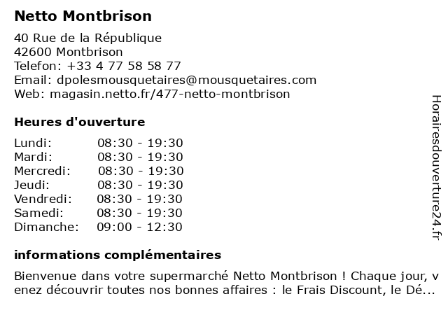 Termes de recherche pour Netto Montbrison:netto, montbrison |