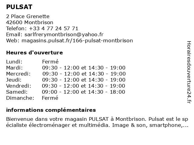 6 PULSAT (Distance: 31,17 km)12 Rue Gambetta, 42500 Le Chambon-Feugerolles pulsat |