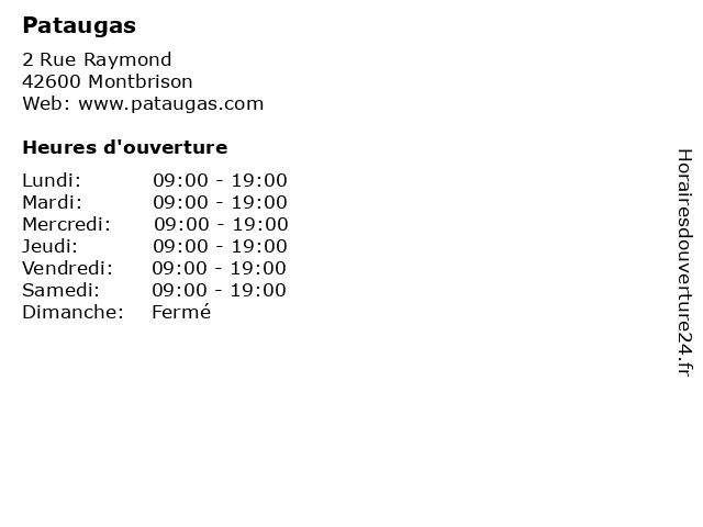 1 Pataugas (Distance: 27,32 km) - Rue de Verdun, 42580 L'Étrat chaussures femme, homme et enfant, pataugas 2 Pataugas (Distance: 30,95 km) 29 Rue du Peuple, 42000 Saint-Étienne chaussures femme, homme et enfant, pataugas 3 Pataugas (Distance: 31,00 km) 7 Rue Michelet, 42000 Saint-Étienne chaussures femme, homme et enfant, pataugas 4 Pataugas (Distance: 31,06 km) 18 Rue Michelet, 42000 Saint-Étienne chaussures femme, homme et enfant, pataugas 5 Pataugas (Distance: 56,59 km) - Avenue du Chater, 69340 Francheville chaussures femme, homme et enfant, pataugas 6 |