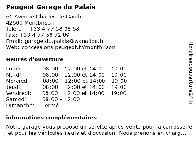 | Lundi | 08:00-12:00 et 14:00-19:00 |