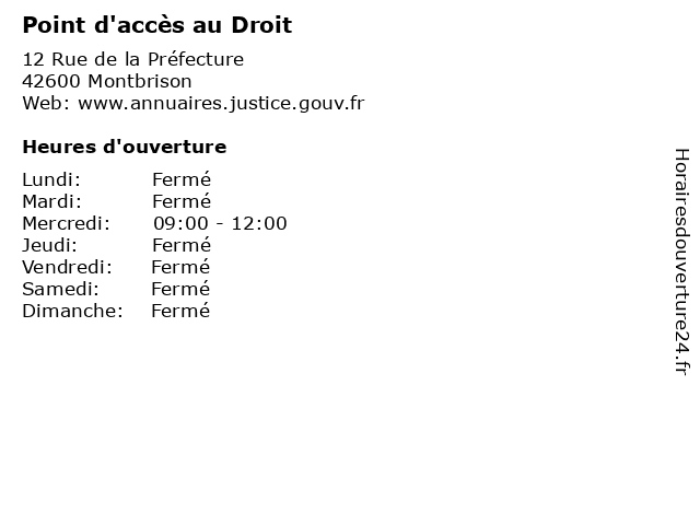| Lundi | Fermé |