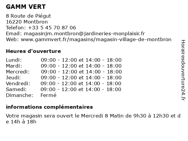 2 GAMM VERT (Distance: 14,48 km) Rue des Champs Fleuris, 24360 Piégut-Pluviers animalerie, gamm, jardin, jardinerie, mobilier de jardin, plantes, pépinière, vert 3 GAMM VERT (Distance: 14,50 km) 129 Route du Stade, 16410 Bouëx animalerie, gamm, jardin, jardinerie, mobilier de jardin, plantes, pépinière, vert 4 GAMM VERT (Distance: 18,34 km) Rue de la Gare, 16260 Chasseneuil-sur-Bonnieure animalerie, gamm, jardin, jardinerie, mobilier de jardin, plantes, pépinière, vert 6 Javerlhac Pro Vert (Distance: 11,66 km) 287 Route de Nontron, 24300 Javerlhac-et-la-Chapelle-Saint-Robert javerlhac, pro, vert |
