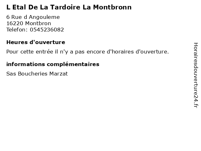 Termes de recherche pour L Etal De La Tardoire La Montbronn:tardoire, montbronn, boucheries, etal, poissonneries, marzat |