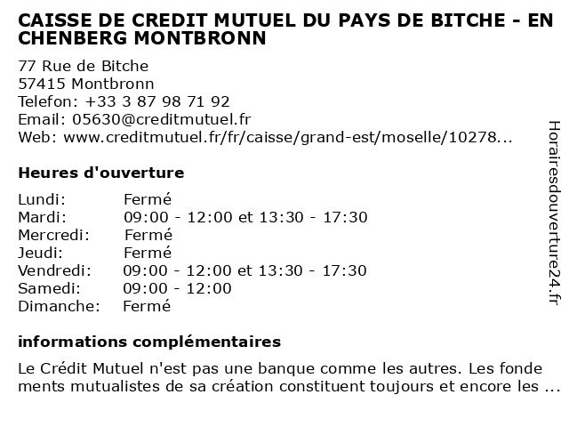 Termes de recherche pour CAISSE DE CREDIT MUTUEL DU PAYS DE BITCHE - ENCHENBERG MONTBRONN:du, de, crédit, mutuel, caisse, pays, bitche, montbronn, enchenberg |
