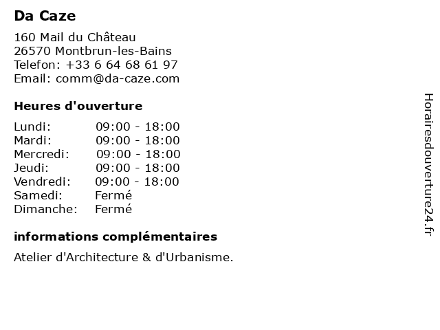 2 Da Prato Denis Georges (Distance: 40,90 km) Quai Le Village, 84220 Cabrieres D Avignon boucheries, da, denis, georges, poissonneries, prato 3 DA SILVA JORDAN (Distance: 42,20 km) Rue Ledru Rollin, 84800 L'Isle-sur-la-Sorgue aménagement paysager, création espaces verts, création jardin, da, débroussaillage, entretien espaces verts, entretien jardin, jordan, rénovation espaces verts, rénovation jardin, silva, taille oliviers, élagage 4 Boucherie Da Prato (Distance: 46,55 km) 14 Place du 14 Juillet, 84160 Pertuis alimentation, boucher, boucherie, charcuterie, charcutier, commerce, da, pertuis, prato, traiteur, viandes 5 Dr Pascale Da Costa Jaudeau - Médecin généraliste (Distance: 47,73 km) 14 Avenue Auguste Bastide, 04860 Pierrevert consultation, costa, da, dr, généraliste, jaudeau, médecin, pascale, santé, vaccination 6 Carlos Jorge Da Silva Viera Carlos (Distance: 53,42 km) 74 Avenue De La Victoire, 13660 Orgon carlos, da, jorge, restaurants, silva, viera |