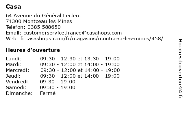 | Lundi | 09:30-12:30 et 13:30-19:00 |