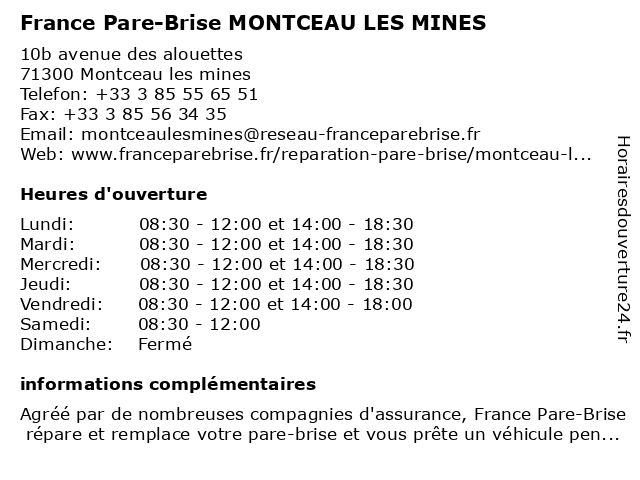 | Lundi | 08:30-12:00 et 14:00-18:30 |