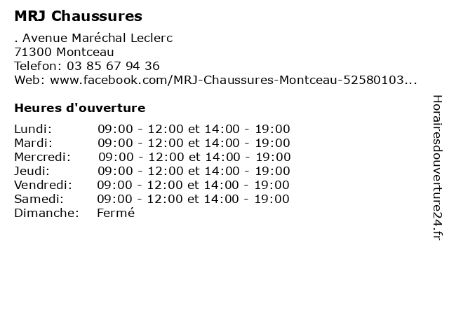 | Samedi | 09:00-12:00 et 14:00-19:00 |