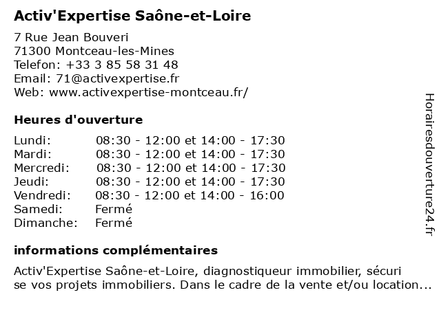 | Lundi | 08:30-12:00 et 14:00-17:30 |