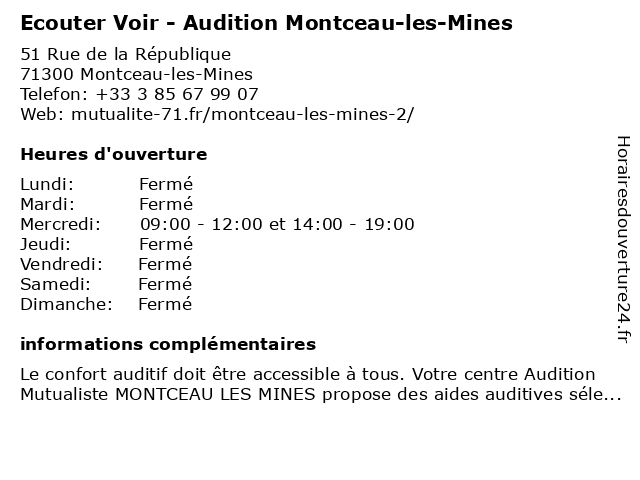 | Mercredi | 09:00-12:00 et 14:00-19:00 |