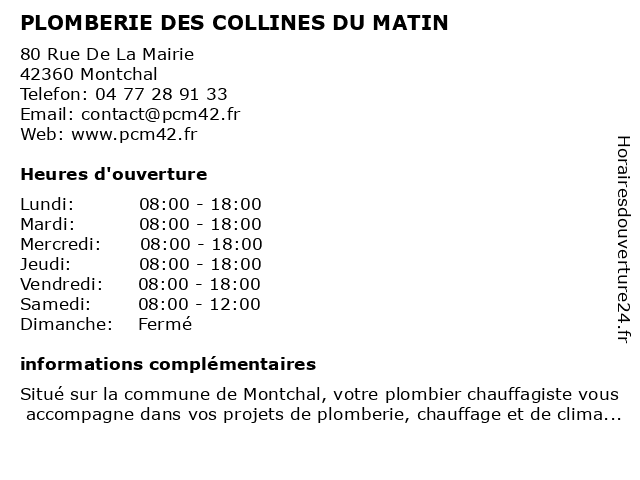 1 Pompes Funèbres Baray Collines du Matin (Distance: 4,14 km) Pont Rochand, 42360 Panissières baray, collines, du, funèbres, matin, pompes 2 Communauté de Communes des Collines du Matin (Distance: 4,15 km) 2 Rue Denis Boulanger, 42360 Panissières administration, collines, communauté, communes, de, des, du, matin, services publics 3 Plomberie Zinguerie chauffage Pascal Leroi (Distance: 5,12 km) 296 Les Pérelles, 42810 Rozier-en-Donzy chauffage, leroi, pascal, plomberie, zinguerie 5 Le Relais Du Matin (Distance: 10,77 km) 3 Rue Henriette Des Garets, 42122 St Marcel De Felines matin, restaurants 6 Anthony Burnod Plomberie (Distance: 16,55 km) 33 Allée des Chênes Rouges, 42110 Poncins anthony, burnod, plomberie |