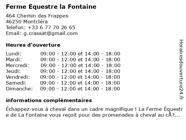 | Lundi | 09:00-12:00 et 14:00-18:00 |