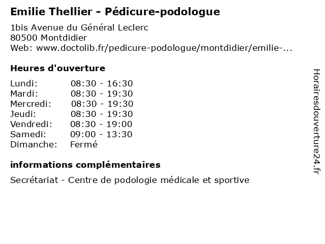 1 Aurore Marchandise - Pédicure-podologue (Distance: 0,00 km) 1 bis Avenue du Général Leclerc, 80500 Montdidier aurore, marchandise, orthoplastie, podologue, pédicure, pédicurie 2 Camille Gestin - Pédicure-podologue (Distance: 0,00 km) 1 bis Avenue du Général Leclerc, 80500 Montdidier camille, cheville, gestin, orteil, pied, podologue, pédicure 3 Murielle Dessus - Pédicure-podologue (Distance: 0,00 km) 1 bis Avenue du Général Leclerc, 80500 Montdidier cheville, dessus, murielle, orteil, pied, podologue, pédicure 4 Cécile Basset - Pédicure-podologue (Distance: 0,00 km) 1 Avenue du Général Leclerc, 80500 Montdidier basset, cecile, cheville, cécile, orteil, pied, podologue, pédicure 5 Paul Rondeau - Pédicure-Podologue (Distance: 1,00 km) 17 Rue Georges Amson, 80500 Montdidier paul, pied, podologie, podologue, pédicure, romain, rondeau, santé 6 Marine Hartmann - Pédicure-Podologue (Distance: 1,00 km) 17 Rue Georges Amson, 80500 Montdidier hartmann, marine, pied, podologie, podologue, pédicure, romain, santé |