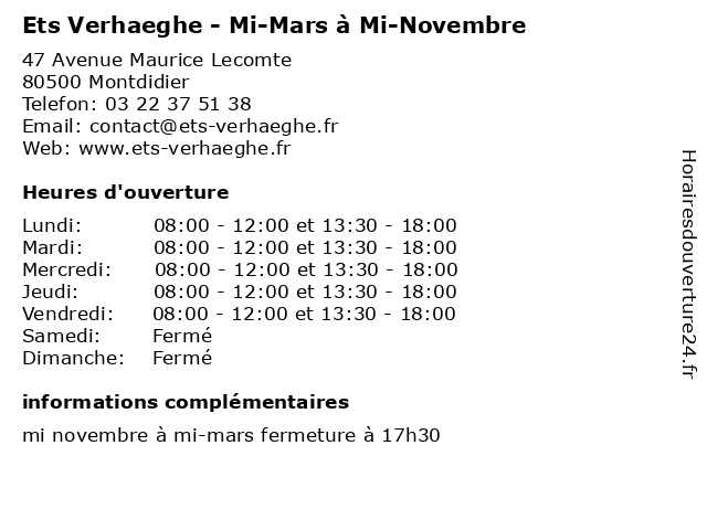 | Lundi | 08:00-12:00 et 13:30-18:00 |