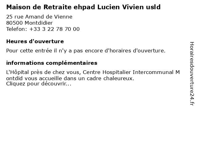 | Appeler Maison de Retraite ehpad Lucien Vivien usld | |