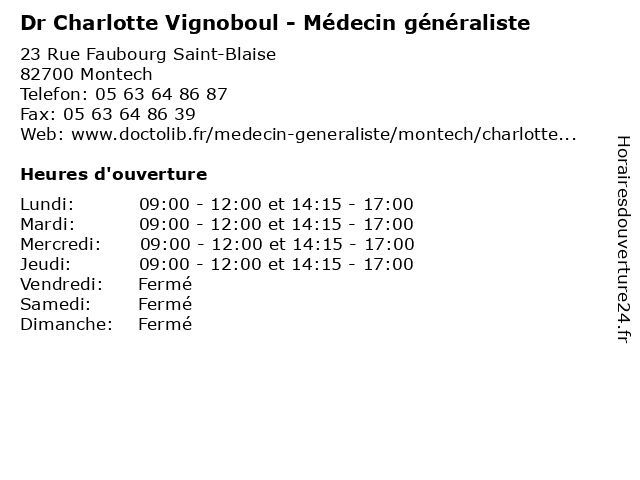 2 Maître Charlotte Lévi - Avocate (Distance: 12,58 km) 14 rue de la Comédie, 82000 Montauban avocate, avocats, cabinet, charlotte, conseils, contentieux, juridique, justice, litiges, lévi, maître, services 3 Charlotte Barreau - Sage-femme (Distance: 12,62 km) 100 rue Leon Cladel, 82000 Montauban barreau, charlotte, consultation, docteur, femme, med, medecine, medical, médecin, sage, traitement 4 Dr Charlotte Dalet - Médecin généraliste (Distance: 12,62 km) 100 rue Leon Cladel, 82000 Montauban charlotte, consultation, dalet, docteur, dr, généraliste, med, medecine, medical, médecin, traitement 5 Dr Charlotte Dumez - Psychiatre (Distance: 13,35 km) 330 Avenue Charles de Gaulle, 82000 Montauban charlotte, dr, dumez, folie, psychiatre, psychiatrie, psychiatrique 6 Charlotte Zago - Ostéopathe (Distance: 14,17 km) 23 Chemin des Ramonets, 82000 Montauban charlotte, ostéo, ostéopathe, ostéopathes, soins, zago |