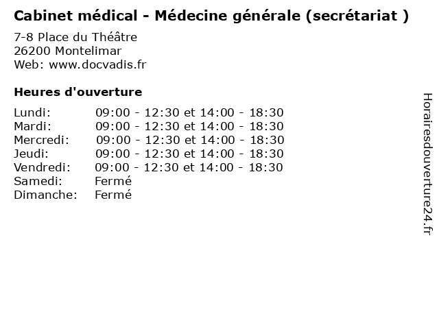 | Lundi | 09:00-12:30 et 14:00-18:30 |