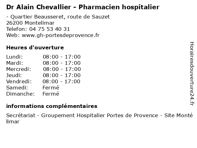 Termes de recherche pour Dr Alain Chevallier - Pharmacien hospitalier:provence, de, montelimar, biologie, alain, portes, site, hospitalier, chevallier, dr, gh, biochimie, pharmacien, analyse, biochismiste |