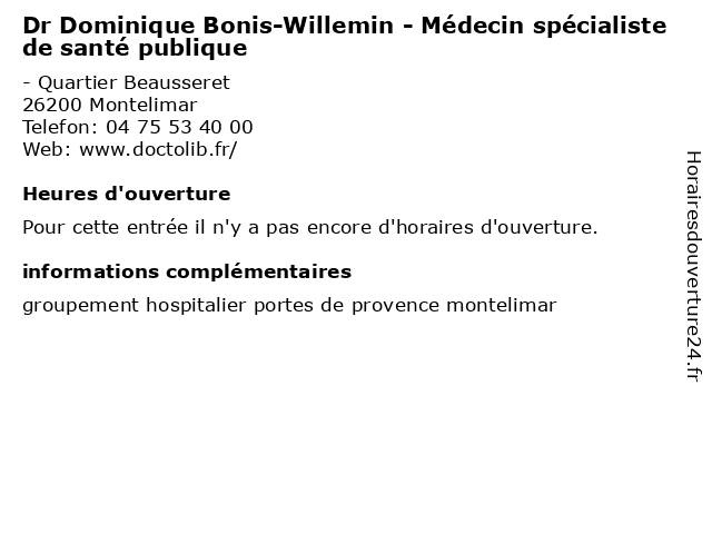 | Appeler Dr Dominique Bonis-Willemin - Médecin spécialiste de santé publique | |