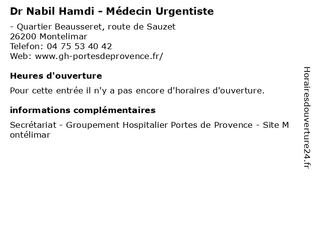 | Appeler Dr Nabil Hamdi - Médecin Urgentiste | |