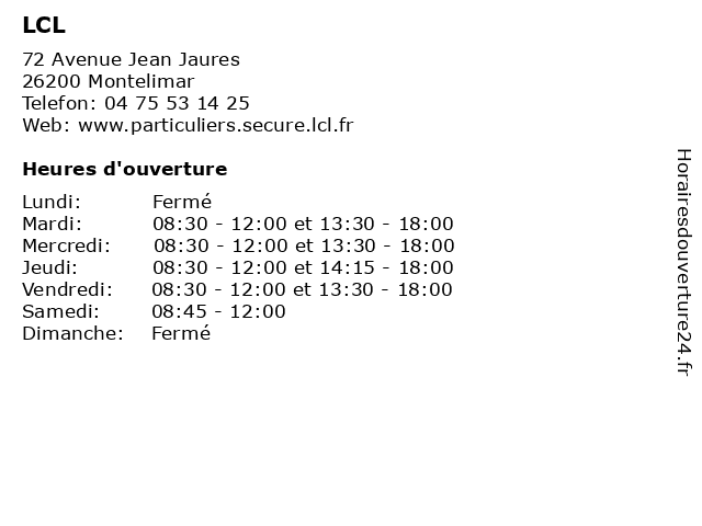1 LCL (Distance: 0,74 km) 13 Place du Théâtre, 26200 Montélimar agence, assurance, bancaire, banque, lcl 2 LCL (Distance: 1,94 km) - Boulevard du Président Vincent Auriol, 26200 Montélimar agence, assurance, bancaire, banque, lcl 3 LCL (Distance: 4,94 km) 48 Place Pierre Sémard, 07400 Le Teil agence, assurance, bancaire, banque, lcl 4 LCL (Distance: 19,63 km) - Place du Champ de Mars, 26700 Pierrelatte agence, assurance, bancaire, banque, lcl 5 6 |