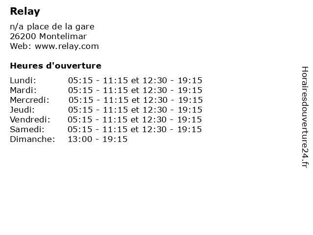 Vendredi | 05:15-11:15 et 12:30-19:15 |