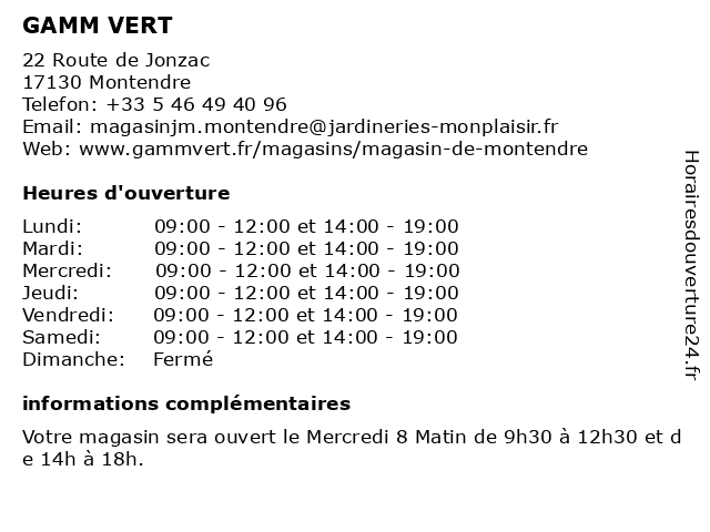 | Samedi | 09:00-12:00 et 14:00-19:00 |