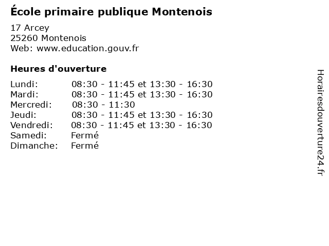 | Mardi | 08:30-11:45 et 13:30-16:30 |