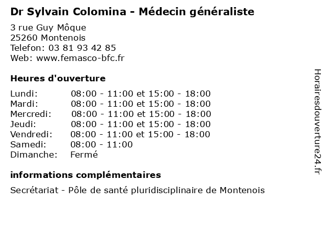 | Lundi | 08:00-11:00 et 15:00-18:00 |