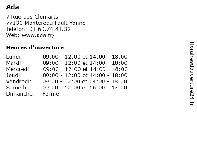 | Lundi | 09:00-12:00 et 14:00-18:00 |