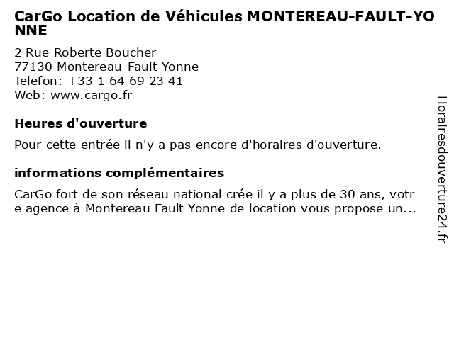 | Appeler CarGo Location de Véhicules MONTEREAU-FAULT-YONNE | |