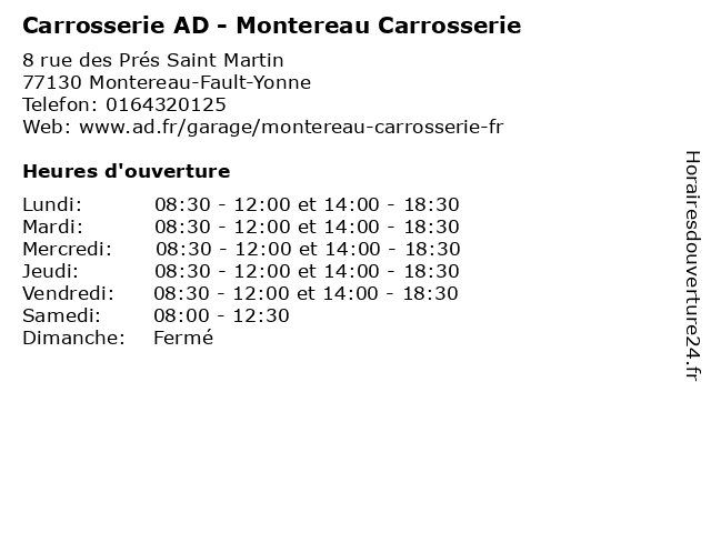 | Lundi | 08:30-12:00 et 14:00-18:30 |