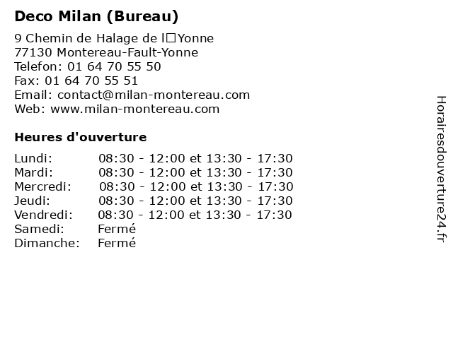 | Lundi | 08:30-12:00 et 13:30-17:30 |