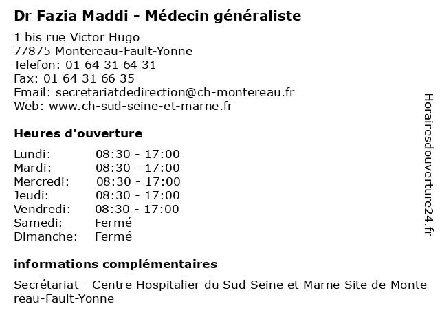 1 Dr Fazia Beggaz - ORL (Distance: 45,29 km) - Lieu-dit Forcilles, 77150 Férolles-Attilly beggaz, consultation, docteur, dr, fazia, med, médecin, médecine, orl, traitement 2 Fazia Sadoud - Diététicienne (Distance: 55,97 km) 9 Rue du Village, 77185 Lognes aliment, dieticien, diététicienne, fazia, medecin, nutrition, sadoud 3 Dr Hassan Al Kahef - Médecin généraliste (Distance: 0,00 km) 1 bis rue Victor Hugo, 77875 Montereau-Fault-Yonne al, consultation, docteur, dr, généraliste, hassan, kahef, med, médecin, traitement 4 Dr Hassane Amokrane - Médecin généraliste (Distance: 0,00 km) 1 bis rue Victor Hugo, 77875 Montereau-Fault-Yonne amokrane, consultation, docteur, dr, généraliste, hassane, med, médecin, traitement 5 Dr Mohamed-Hedi Bani - Médecin généraliste (Distance: 0,00 km) 1 bis rue Victor Hugo, 77875 Montereau-Fault-Yonne bani, consultation, docteur, dr, généraliste, hedi, med, mohamed, médecin, traitement 6 Dr François Cadot - Médecin généraliste (Distance: 0,00 km) 1 bis rue Victor Hugo, 77875 Montereau-Fault-Yonne cadot, consultation, docteur, dr, francois, françois, généraliste, med, médecin, traitement |