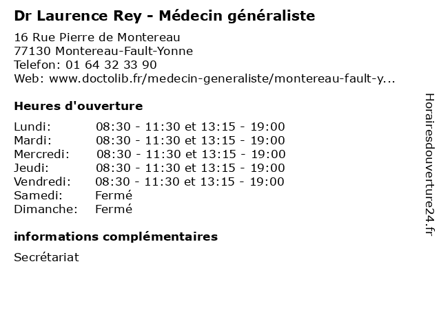 | Lundi | 08:30-11:30 et 13:15-19:00 |