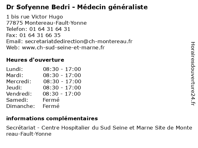 | Lundi | 08:30-17:00 |