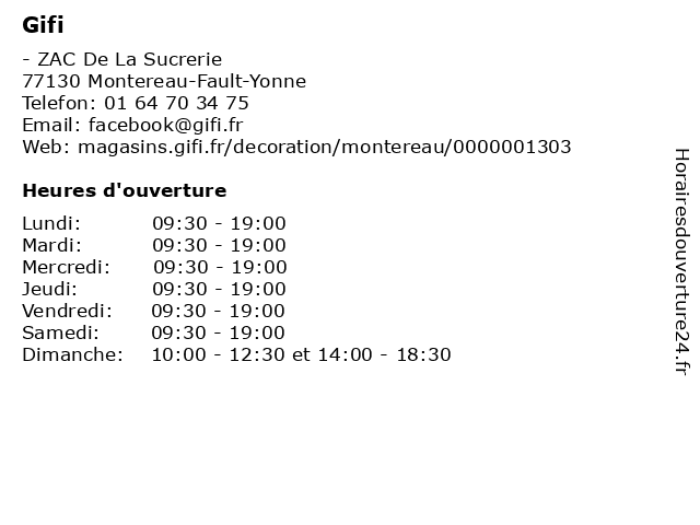 | Dimanche | 10:00-12:30 et 14:00-18:30 |