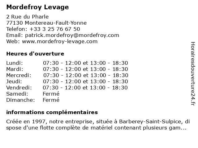 Lundi | 07:30-12:00 et 13:00-18:30 |