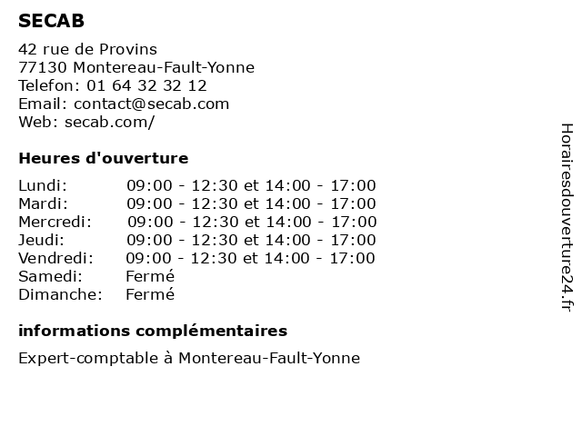 Lundi | 09:00-12:30 et 14:00-17:00 |