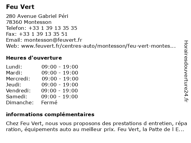1 Feu Vert (Distance: 9,67 km) Avenue du Président Georges Pompidou, 95120 Ermont amortisseurs, ampoule, autoradio, batterie, chaussettes neige, chaînes neige, coffre de toit, feu, freinage, glacière, pneu, pneu 4 saisons, pneu hiver, remorque, révision, vert, vidange 2 Feu Vert (Distance: 9,89 km) Rue des Cayennes, 78700 Conflans-Sainte-Honorine amortisseurs, ampoule, autoradio, batterie, chaussettes neige, chaînes neige, coffre de toit, feu, freinage, glacière, pneu, pneu 4 saisons, pneu hiver, remorque, révision, vert, vidange 3 Feu Vert (Distance: 11,37 km) Route de Quarante Sous, 78630 Orgeval amortisseurs, ampoule, autoradio, batterie, chaussettes neige, chaînes neige, coffre de toit, feu, freinage, glacière, pneu, pneu 4 saisons, pneu hiver, remorque, révision, vert, vidange 4 Feu Vert (Distance: 11,81 km) 1 Rue Louis Delage, 95310 Saint-Ouen-l'Aumône amortisseurs, ampoule, autoradio, batterie, chaussettes neige, chaînes neige, coffre de toit, feu, freinage, glacière, pneu, pneu 4 saisons, pneu hiver, remorque, révision, vert, vidange 5 Feu Vert (Distance: 17,13 km) n/a Route de Paris, 10600 Barberey-Saint-Sulpice automobile, centre auto, dépannage, entretien, feu, garage, nettoyage, pièces techniques, pneus, réparation, transport, tuning et accessoires, vert, équipement intérieur / extérieur auto 6 Feu Vert Entreprises (Distance: 0,06 km) 280 Avenue Gabriel Péri, 78360 Montesson amortisseurs, ampoule, autoradio, batterie, chaussettes neige, chaînes neige, coffre de toit, entreprises, feu, freinage, glacière, pneu, pneu 4 saisons, pneu hiver, remorque, révision, vert, vidange |
