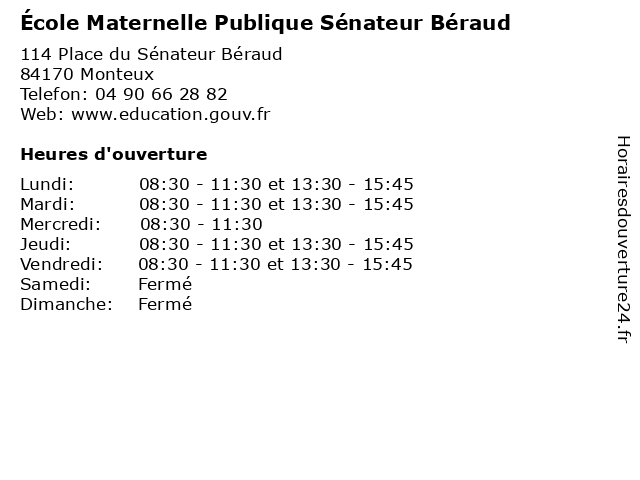 | Mardi | 08:30-11:30 et 13:30-15:45 |