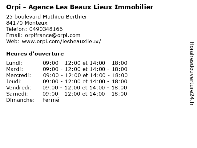 | Lundi | 09:00-12:00 et 14:00-18:00 |