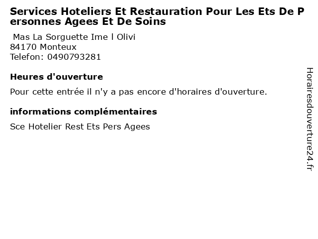 | Appeler Services Hoteliers Et Restauration Pour Les Ets De Personnes Agees Et De Soins | |