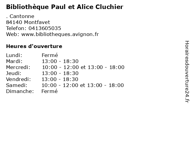 | Mercredi | 10:00-12:00 et 13:00-18:00 |