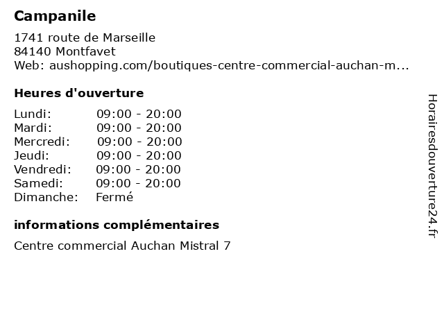 1 Campanile (Distance: 2,16 km) 1741 Route de Marseille, 84140 Montfavet beaute, bouygues, cafe, campanile, chausures, club, enfants, mode femmes, mode hommes, restaurant, sport, telecom 2 Campanile (Distance: 7,59 km) 553 Avenue Louis Braille, 84130 Le Pontet beaute, boutiques, cache, campanile, chaussures, deco, enfants, mode femme, mode hommes, restaurant, sport 3 Hôtel Campanile (Distance: 0,00 km) . Route De Marseille, 84140 Avignon bar, campanile, hotel, hôtel, restaurant, service 4 Hôtel Campanile (Distance: 2,94 km) 60 Rue du Bon Vent, 84140 Avignon bar, campanile, hotel, hôtel, restaurant, réunions, évenements 5 6 A Table (Distance: 4,17 km) 162 Avenue Pierre Semard, 84000 Avignon cafe, chaussures, enfants, homme, lingerie, mode femme, restaurant, service, shopping, table 6 Armand Thiery Femmes (Distance: 4,17 km) 162 Avenue Pierre Semard, 84000 Avignon armand, cafe, chaussures, enfants, femmes, homme, lingerie, mode femme, restaurant, service, shopping, thiery |
