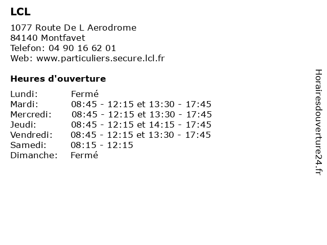 1 LCL (Distance: 4,83 km) 13 Rue Berthelot, 13160 Châteaurenard agence, assurance, bancaire, banque, lcl 2 LCL (Distance: 5,68 km) 2 Avenue Gustave Goutarel, 84130 Le Pontet agence, assurance, bancaire, banque, lcl 4 LCL (Distance: 7,65 km) 12 Rue de la République, 84000 Avignon agence, assurance, bancaire, banque, lcl 5 LCL (Distance: 10,28 km) 21 Avenue de Verdun, 30133 Les Angles agence, assurance, bancaire, banque, lcl 6 LCL (Distance: 10,36 km) 30 Cours de la République, 84700 Sorgues agence, assurance, bancaire, banque, lcl  |