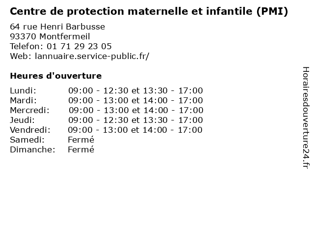 | Lundi | 09:00-12:30 et 13:30-17:00 |