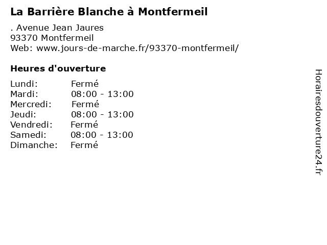 | Lundi | Fermé |