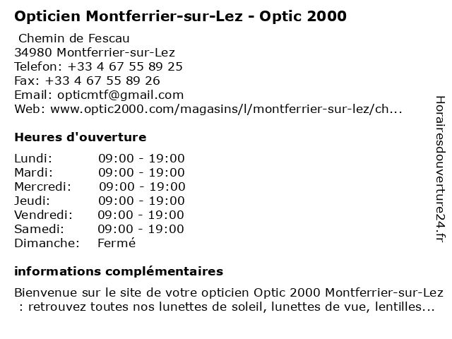 2 Atol Mon Opticien Jacou (Distance: 3,47 km) D112, 34830 Jacou atol, atol les opticiens, atol mon opticien, jacou, lentilles, lunettes de soleil, lunettes de vue, mon, opticien, opticien jacou 3 Lissac l'Opticien Saint-Gély-du-Fesc (Distance: 3,65 km) 40 Rue des Vautes, 34980 Saint-Gély-du-Fesc du, fesc, gély, l'opticien, lentilles de contact, lissac, lunettes de soleil, lunettes de vue, opticien, opticien lissac, saint 4 Opticien SAINT-GÉLY-DU-FESC Optical Center (Distance: 3,86 km) 60 Rue de la Tour, 34980 Saint-Gély-du-Fesc center, du, fesc, gély, optical, opticien, saint 6 Atol Mon Opticien Grabels (Distance: 5,43 km) 1 Rue du Grand Champ, 34790 Grabels atol, atol les opticiens, atol mon opticien, grabels, lentilles, lunettes de soleil, lunettes de vue, mon, opticien, opticien grabels |