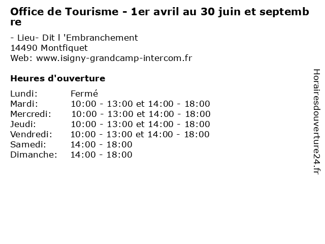 | Mardi | 10:00-13:00 et 14:00-18:00 |